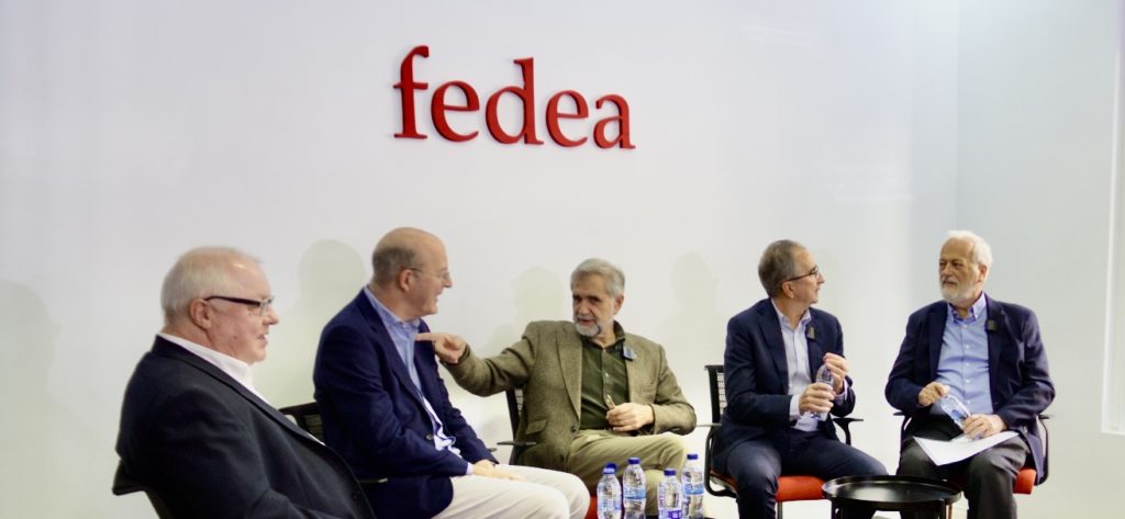Las jornadas comenzaron el miércoles 24 con una mesa redonda de antiguos directores de Fedea, que reflexionaron sobre el papel de los think tanks en el análisis, seguimiento y diseño de las políticas públicas y repasaron la experiencia de la Fundación en sus 40 años de historia.