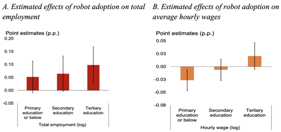 Figura 4. Adopción de robots e impactos en el mercado laboral en países del Sudeste Asiático según nivel de cualificación