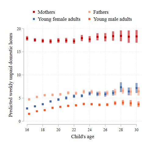 ¿Podemos entender este fenómeno observando en paralelo qué ocurre dentro del hogar, con la asignación del tiempo entre madres y padres, cuando los hijos crecen y finalmente se van de casa? ¿Siguen ellas siendo las principales responsables de las tareas domésticas cuando desaparecen las demandas de cuidado?
