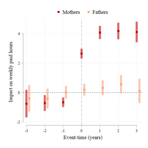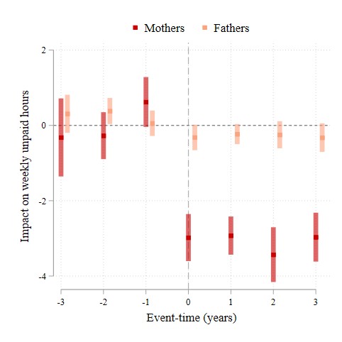- Los padres, en cambio, no modifican su tiempo ni en el hogar ni en el mercado laboral.
