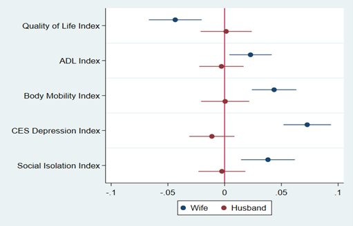 Quizás el resultado más novedoso e interesante de nuestro estudio se refiere a los efectos cruzados entre parejas. Y aquí el patrón es inequívoco y asimétrico. Encontramos que el riesgo genético de TDAH de los maridos afecta negativamente la salud de sus esposas en todas las dimensiones analizadas: calidad de vida, salud física, depresión y aislamiento social. En cambio, el riesgo genético de TDAH de las esposas no parece afectar significativamente la salud de sus maridos.
