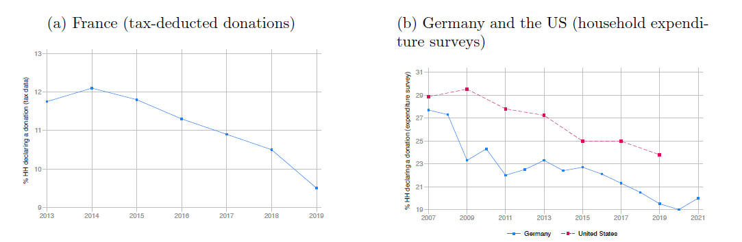 La observación inicial es intrigante. Desde hace años, en Francia, Alemania, Estados Unidos, Países Bajos, Suecia y Reino Unido, la proporción de ciudadanos que dona a organizaciones benéficas ha venido cayendo. No se trata de que se done menos en total, sino de que el sector depende de una base cada vez más pequeña de donantes.