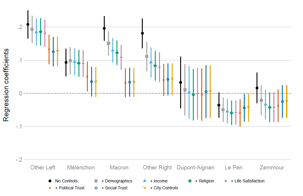 El patrón se repetía: donde Le Pen sacaba más votos, menos hogares donaban. Y esto controlando por demografía, ingresos, desigualdad, población extranjera, empleo, educación... variables que pueden explicar tanto el voto como las donaciones.